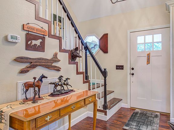 For everyone out there looking for a stunning 4 bedroom/2.5 bath home on a level lot in a beautiful neighborhood, you CAN'T miss this one! The curb appeal is perfection! The home is located within 5 minutes of the hospital, restaurants and shopping! Enter from the front porch (imagine morning coffee in your rocking chair), through your darling turquoise front door. As you walk in the front door you will love the 2 story dramatic entry with an open staircase to your right and the large yet cozy family room to your left. The family room has a natural gas burning fireplace for those chilly nights. Further in you'll find the INCREDIBLE kitchen with a GAS COOKTOP and storage galore. This is truly a cooks dream kitchen. The kitchen is attached to a breakfast room that includes a beautiful hutch that stays with the home and a window seat area with storage. There is a large room off of the kitchen with windows on 2 walls that would make a divine dining room (currently being used as a doggy medal room for some amazing pooches). The large laundry room is off of the kitchen leading to the finished garage with built in shelves. The floors of the garage were recently sealed with a polyurea chip coating. Going back to the front door, to the right and behind the staircase is a darling half bath for guests and the entry to the primary suite. This is the primary suite you have dreamed of. There is direct access to the deck through french doors, a beautiful sliding hand painted window covering, 2 HUGE walk in closets and the primary bath... check out those photos- WOW! Upstairs you will find 3 additional bedrooms and a full bath with a walk-in shower. There is also a perfect spot for a desk in the open area. All of this sits on a flat lot, with a backyard that is fully fenced, has a new Trex deck, and a large storage building. Please ask your Realtor for the list of updates (over $40k since 2018) and utility info!