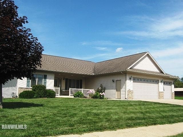Very nice 4 bedroom, 3 bath home features split bedroom plan, large living room with stone gas log fireplace. Dining area has a built-in china cabinet. Main floor laundry. Carpet and tile flooring. Large master bedroom with full master bath featuring double sink, whirlpool tub and shower, spacious walk-in closet. Deck is 17'3" x 33'5". Lower level features 2 egress windows. Three stall attached garage with side walk-in door, concrete driveway and sidewalks. Located in one of Lena's newer subdivisions.