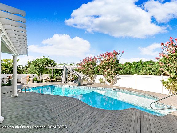 Dream coastal retreat! Ideal location, just steps from the ocean. Private beach access, oversized property lot (95ft frontage, 128ft deep). Backyard oasis with an oversized pool, cedar deck, and outdoor kitchen. Spacious living room, dining area, and kitchen overlooking the pool. Upstairs, you'll find three guest bedrooms that offer comfort and relaxation. The primary bedroom includes its own bathroom and balcony, providing a tranquil retreat where you can unwind and enjoy the picturesque surroundings. Additionally, one of the bedrooms can easily be transformed into a fifth bedroom, catering to your specific needs. As a member of the renowned Curtis Point Association, you'll have exclusive access to a private beach with lifeguards and tennis courts right on the water. Embrace the coastal lifestyle and enjoy the best of both worlds - a serene beachfront escape and close proximity to the vibrant downtown areas of Bay Head and Lavallette.