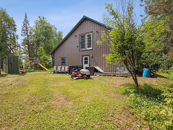 Looking for privacy and seclusion in the big woods of Northern Wisconsin. Well Built cabin with steel exterior and half log interior. This property includes (2) parcels and perfect for adventure. Great for hunting deer, turkey, bear, grouse, rabbits. Snowmobile trail is right outside your front door, and right near the ATV trail access. Close to several lakes for swimming, boating, and fishing. Endless trails for hiking, biking, ATV or skiing. A small creek runs right through the property. Wood burning stove, in floor heat with boiler. 6-pancel doors, ceramic backsplash, custom cabinetry, newer windows, stamped concrete, shipping container to store all your storage needs! MUST SEE! This property does not have a fire # Power is currently setup with solar, generator and, battery