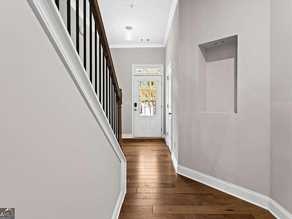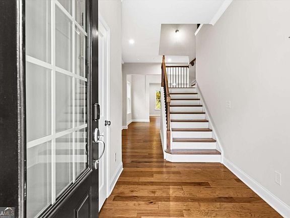 Modern NEW-Construction Style End-Unit Townhome Built 2023 Aldyn Community 3BR/3.5BA 2-Car Garage Premium Upgrades Throughout. Experience elevated contemporary living in this stunning, like-new end-unit townhome located in the sought-after Aldyn community! Just minutes from the vibrant charm of downtown Woodstock. Built in 2023 and lightly lived in, this home showcases sleek modern design, luxury finishes, and the fresh feel of new construction throughout.Step into a bright, open main level featuring warm hardwood floors, custom lighting, and a beautifully designed modern fireplace in the living room. Beautiful iron rod railings enhance the staircase, adding a sophisticated architectural touch.The gourmet kitchen offers white cabinetry, quartz countertops, a large island, stainless-steel appliances, range hood, under-cabinet lighting, a chic tile backsplash, and brand-new refrigerator, washer, and Walk in pantry. Exceptional modern Kitchen.The upper floor features hardwood flooring in all common areas and high-end carpet in all three bedrooms, creating a cozy, warm, and inviting feel. Tiles in the laundry area add durability and easy maintenance. The luxurious primary suite includes a private balcony, two walk-in closets, and a spa-inspired bathroom with double vanities, soaking tub, and a designer-tiled walk-in shower.Additional upstairs highlights include a large laundry room with a utility sink, plenty of storage, and new high-efficiency washer-dryer. Both secondary bedrooms include their own full private baths and walk-in closets. One of which features a window, allowing natural light and ventilation. The hardwood floor in the common area has made easy convenience. Outdoor living is elevated with both a front patio and a private fenced backyard patio, perfect for entertaining or relaxation. Premium upgrades continue throughout the home with high-end blinds, new engineered hardwood flooring, and beautifully finished spaces. A standout feature is the oversized, ground-level 2-car garage, easy to access and complete with a premium finished floor and TWO water heaters for added convenience.Located in a quiet, beautifully maintained community offering resort-style amenities, including a swimming pool and pool house. This home is just minutes from top-tier shopping, dining, parks, and major highways. A rare blend of modern style, comfort, and new-construction elegance. Schedule your private tour today!