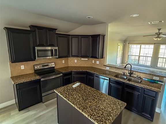 Wood-burning fireplaceSpacious side yardStainless steel appliancesFlex spaceSpacious family roomGranite countertopsCovered patios