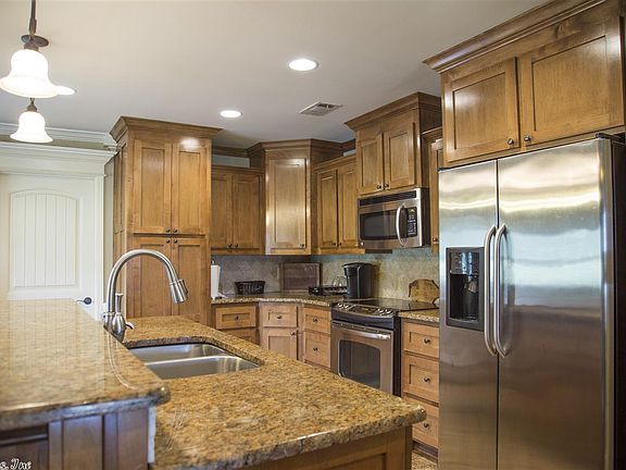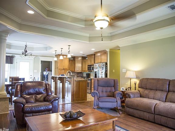 This home has so much to offer! Kitchen features granite countertops, breakfast bar, tiled backsplash, pantry, slide-in stove, and the fridge stays! Large master has tray ceiling, crown molding, walk-in tile shower, Jaccuzi tub, his & her closets, and double sinks. Also, double tray in living room, fireplace, wood floors, all brick home, granite countertops throughout, walk-in closets in guest rooms, floored attic for storage, and stocked pond perfect for fishing. Call to see this home today!