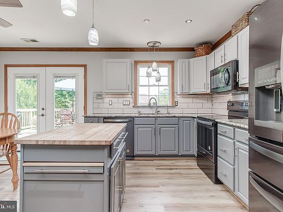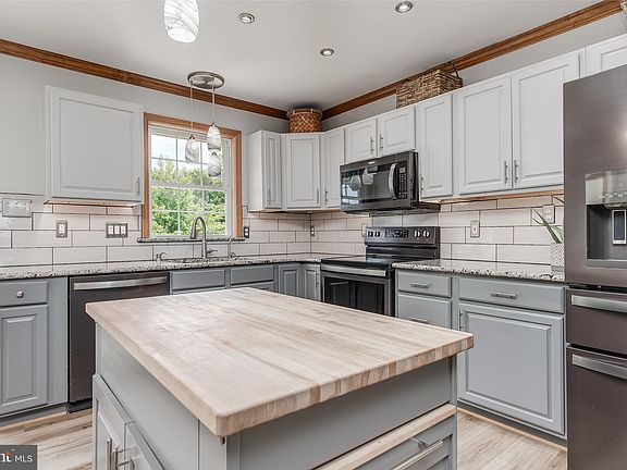 COMPLETE RENOVATION on this unique and carefully appointed rancher, sitting on a fenced-in, half-acre corner lot in Whispering Hills! With 2 primary suites and 2 additional bedrooms, an oversized 2 car attached garage with full workshop below, and 2 decks with hot tub for entertaining, you won’t be disappointed! The list of recent updates is extensive: Freshly painted with new doors, flooring and trim throughout! The kitchen has been updated with granite countertops, additional cabinetry and island painted in tuxedo style shades of gray, black stainless appliances, under-cabinet LED lighting, handmade Spanish tile backsplash and a newly built 6’ pantry with double doors. Both full bathrooms on the main level have been renovated with Carrera marble tile, new vanities, lighting, faucets and toilets. The fully finished lower level offers 9’ ceilings, a second en-suite bedroom with walk-in closet and renovated bathroom complete with newly tiled dual head shower with frameless glass door, 6’ by 42” soaking tub with jets, new double sink vanity, toilet, lighting and custom linen closet. The bedroom opens to a cozy family room with gas fireplace, office/crafting space, laundry/storage room and a walk-out door to the lower deck. The 2-story addition includes a 26x25 garage with access to the kitchen and upper deck and additional storage above. Below is a full workshop with 84” bay and separate steel pedestrian door. You’ll enjoy the brand new 33’x16’ upper deck with plenty of room for outdoor furniture and entertaining or relax on the lower 33’x14’ deck in your hot tub with new cover and pillows. The fully fenced backyard includes double and dual-single gate access, a newly built privacy fence, a 16’x8’ freshly painted shed, mature trees and professional landscaping. Neighborhood with sidewalks, playground and Smithsburg schools only a half mile away… this home is like no other! HVAC (2013), Hot tub (2016), upgraded attic insulation (2017), garage/workshop addition (2019), roof (2020), front porch (2021), split rail fence (2021), privacy fence (2023)