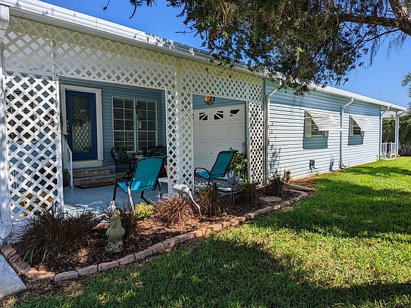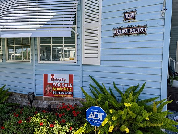 GRAND HOME WITH GRANITE AND GARAGE! On a great big corner lot in The Gardens of Parrish, a Premier 55 plus community. This is a manufactured home, but it sure doesn't feel like one with the many upgrades and custom additions, starting with a gorgeous glass front door as you enter the home, the huge 11' x 28' living room that highlights 6 Bay windows will surprise you! Drywall walls and beautiful laminate floor (6 yrs old) throughout the home with ceramic tile in the fully updated baths, both with tile showers! Over 2,000 SF in this warm and inviting residence! 2 bedroom, 2 bath plus bonus room. Ladies, an amazing kitchen awaits you with all new custom cabinets topped with granite countertops, backsplash and a wonderful breakfast bar complete with Samsung 2018 stainless steel appliances as well as an under counter wine fridge, sound good? The bonus room can be your special place for whatever you like, whether its a TV room, your office, it's all yours to design. A very wide hallway takes you to the bedrooms as well as the separate laundry room That includes a washer and dryer (2020) and the entrance to the garage! Double doors open to the spacious main bedroom, a king bed will fit easily in this fantastic room with a generous walk-in closet. The open en suite has new block windows, granite countertops, new sinks and lighting, attached is a separate room for the commode, storage cabinets and walk-in tile shower. This is a very handsome home, it has beautiful curb appeal, a long driveway, with a golf cart drive, (sorry, golf cart not included in sale.) Pretty landscaping and mature trees surround the property, sprinkler system installed. Awnings over the windows . The garage (14'x30') can accommodate an SUV ...AND still have plenty of room in the workshop area with overhead storage, an extra refrigerator as well as a French door to go out to the covered patio. The shingled ROOF and HVAC system were both replaced in 2018. Tie downs 2019, ADT security system available, wired to doors, windows and controllable by the panel or your phone. This home is being sold. Unfurnished, furniture is negotiable. The Gardens of Parrish is a friendly and active community that is pet friendly, amenities include Olympic size swimming pool, large Sun deck, spa, outdoor resident kitchen, fire pit, tennis, shuffleboard, The clubhouse is home to our state-of -the-art fitness center, ballroom, billiard and craft rooms, library, pickleball, cornhole, water aerobics, line dancing, there are clubs to join and a wide variety of activities! Amenities, lawn mowing and trimming and internet and cable with two HD boxes are included in the monthly lot rent. Don't miss this gem of a home! 2023 lot rent is $969 plus taxes. All listing information is deemed reliable but not guaranteed and should be independently verified through personal inspection by appropriate professionals. Integrity Mobile Home Sales cannot guarantee or warrant the accuracy of this information, measurements, or condition of any property. Measurements are approximate. Lot rent is subject to change.