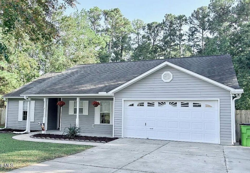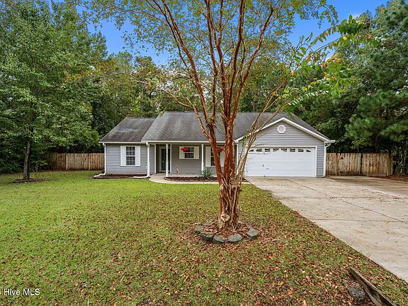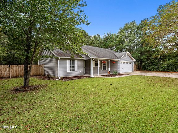 Must see! Charming one level living near Cherry Branch Ferry. Lovingly renovated with 3 bedrooms and 2 baths. Oversized 2 car garage. Lot is over 0.5 acres. Rear yard with privacy fence and storage shed. Family Room has a vaulted ceiling a gas fireplace and engineered hardwood flooring. LVP flooring in hallways and baths, new carpet in bedrooms. Freshly painted throughout including cabinets in eat-in kitchen and garage floor. Enjoy the Cherry Branch amenities that include two pools, tennis courts, playgrounds, beach access, clubhouse and a stable. An easy drive to Cherry Point, Morehead City, Atlantic Beach and Beaufort.