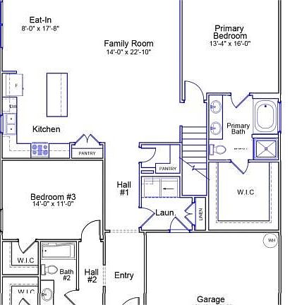 Our single-story plan with three bedrooms, two baths, and an additional upstairs bonus room with bathroom. The kitchen with island and granite is open to the eat-in area and great room. The primary bedroom is split from the secondary bedrooms and features a large walk-in closet and a primary bath with a dual vanity, five-foot walk-in shower, and an over-sized linen closet. Both secondary bedrooms feature walk-in closets. A covered porch sits off of the eat-in area and the yard is fully sodded with landscaping and irrigation.