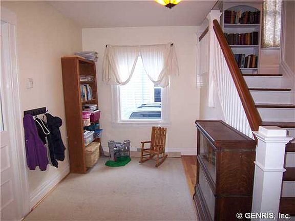 Adorable and spacious. Open floor plan. New hardwoods throughout living/dining rooms and large foyer. Updated roomy kitchen has new cork wide-plank floor, new countertops, white painted cabinetry, new hardware, new stove & dishwasher. Upstairs are 3 brdms & a large bathroom with extra large vanity, all with replacement windows. Full walkup attic for storage. Big backyard is fully fenced. Pretty deck with arbor. Desirable neighborhood.