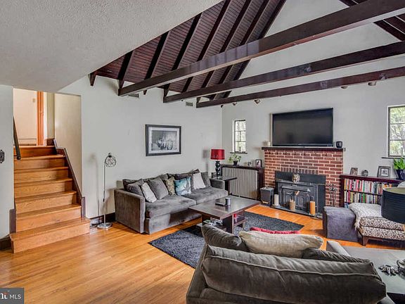 STORYBOOK Tudor on a beautiful lot along branch of Newton Creek with modern rear addition! Beautiful views, amazing location. Charm, charm, charm! Enter into living room with hardwood floors, wood-beamed, cathedral ceilings and wood-burning fireplace insert flanked by built-ins. Dining room with hardwood floors flows into the kitchen with working gas Chambers range. Family room features waterproof plank flooring and beautiful views of the very deep wooded lot. Upstairs, the large master bedroom with cathedral ceilings and walk-in closet. Dramatic views of living room from upper floor hallway. Two more generously-sized bedrooms, both with hardwood floors, and a vintage style black and white full bathroom. Plenty of storage in this house with closet space, pull down attic stairs, basement and extended garage with workroom. 2-zone heat, 200-amp electric service. Replacement windows in LR, DR, Kit (2018), gutter guards (2016), newly painted exterior (2018). Attic fan, waterproofed basement. This unique and gorgeous home is an amazing find!