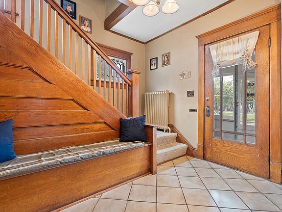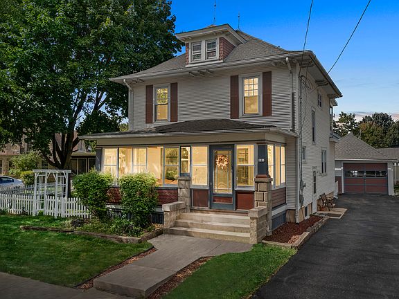 Stunning Craftsman style home near the heart of downtown Burlington. The charming, enclosed front porch welcomes you. The original handcrafted woodwork throughout this home is certain to catch your eye. The living room & dining space are both generous in size & highlighted by gorgeous built-ins. The kitchen makes great use of space & has some newer cabinets tastefully mixed in with the original floor to ceiling lacked cabinetry. Upstairs is home to a spacious master retreat w/large walk-in closet & private balcony. Two additional bedrooms & large bath finish off the space. There is also a unique walk-up attic that could easily be converted to living space. The basement has a finished rec room w/wet bar. All of this on a quant, fenced in corner lot w/hot tub. Welcome home!