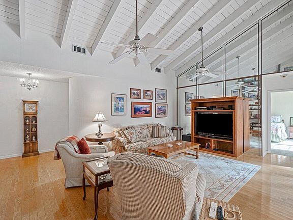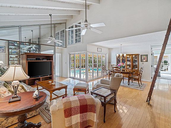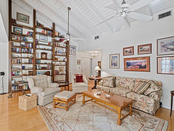 Price Improvement! Very charming home in the sought after community of The Greens of Emerald Hills. Enter the living room with open beam, wood, vaulted ceiling, accompanied by the awesome built in bookshelf with rolling ladder ( it's 15 ft tall!) The floors are hard wood, in the liv rm - tile in kitchen and new carpet in master. The private pool/patio area has lush landscaping, brick pavers and an awning for shade. plus a side sitting area - great for entertaining and great views from the kitchen and fam room. All the sliders and kitchen window are impact, there are shutters for the other 4 openings. This house is NOT updated, but has been well maintained by owner of 22 years. Motivated seller.