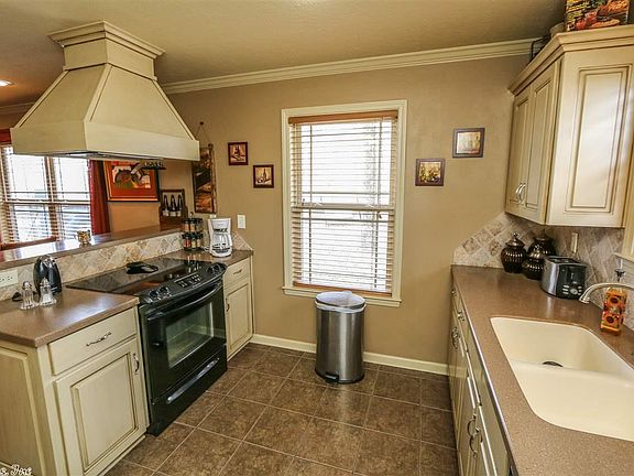 Beautiful home w/ country setting. Open floorplan. Living area has vaulted ceiling and gas fireplace & is open to kitchen/dining area. Ktichen has Corian countertops, tile backsplash and floors, custom cabinets, pantry with pullouts, and a breakfast bar. Guest bedrooms have walk-in closets. Separate office. Master suite with pan ceiling, marble vanity with his/hers sinks, jetted tub, and walk-in closet. Fully fenced backyard with storm cellar & nice deck to enjoy. Serene & Natural surroundings!