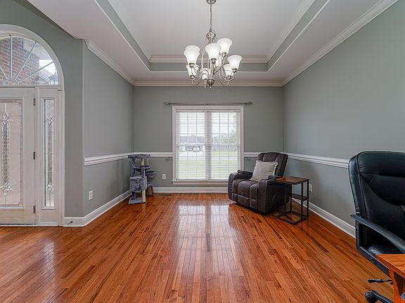 - Features: 9’ Ceiling, Chair Rail, Crown Molding, Tray Ceiling(s), Wood Floor