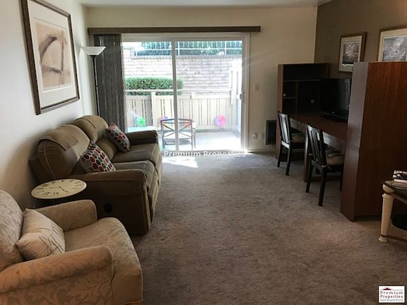 Available for move in now!! This unit can be rented furnished or unfurnished 10;Wonderful unit in desirable location, near Heather Farm and Diablo Hills Golf Course. Very close to shopping, trails, transportation and hospital. 677 square feet of living space. Unit is located on the lower level. 1 bedroom, 1 bath. Carpet throughout. Wall unit heating and A/C unit in living room. The kitchen features Quartz counters with stainless steel appliances; electric stove/oven, convection microwave, dishwasher, refrigerator and garbage disposal. The kitchen opens to dining area/living room. There is a slider in the living room leading to the patio. The bedroom has a wall heater and good size walk-in closet. The bathroom provides a shower over tub. Community laundry located close by. HOA includes water and garbage. Community pool and workout facility. One assigned parking space provided. No Smoking. No pets. 101Kinross Dr. #19 Walnut Creek 94598