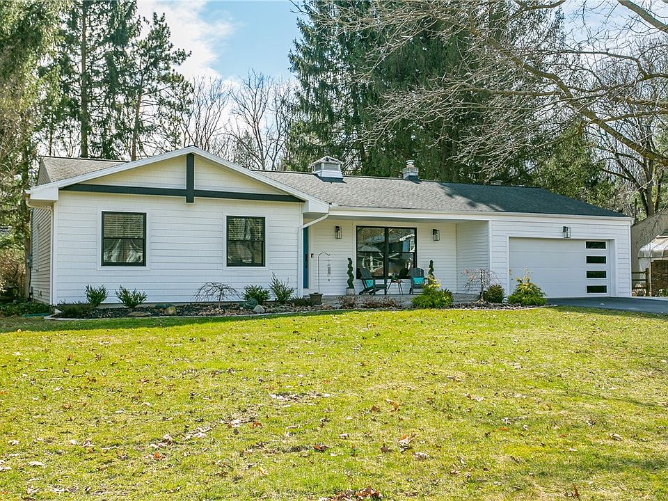 ABSOLUTELY STUNNING TRUE MID-CENTURY MODERN RANCH IN THE HEART OF PITTSFORD! COMPLETELY RENOVATED WITH HIGH-END, TASTEFUL FINISHES THROUGHOUT! NOTHING WAS LEFT UNDONE IN THIS STYLISH, EASY LIVING HOME! SOLID CORE DOORS, LUXURY VINYL FLOORING, SS APPLIANCES, QUARTZ COUNTER TOPS, SO MUCH MORE…THIS ONE HAS IT ALL! GREAT BACK YARD WITH DECK, PATIO AND FIRE PIT! CLOSE TO EVERYTHING… OAK HILL, COUNTRY CLUB OF ROCHESTER, WEGMANS, POWERS FARM MARKET, ST JOHN FISHER, WALK TO PITTSFORD VILLAGE! MOVE RIGHT IN AND START ENJOYING THE GOOD LIFE! SQUARE FOOTAGE DIFFERENCE IS PER SELLER. DELAYED NEGOTIATIONS UNTIL WEDNESDAY 3/13 @ 12PM