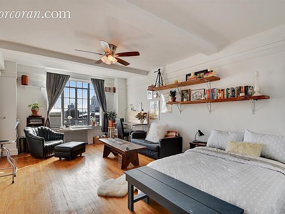 Welcome Home to 101 Lafayette Avenue, 15C! Perched high above it all on the 15th floor of a coveted prewar doorman building in prime Fort Greene, this studio is the perfect starter home and an ideal alternative to renting. Sunny and south-facing with oversized casement windows, apartment 15C brings in great light all day and overlooks the gorgeous brownstone blocks of Fort Greene, the Barclays Center and beyond. The exceptional layout easily accommodates a queen sized bed and two nightstands, a sitting area and a home office. The apartment also has a large and separate windowed eat-in kitchen with breakfast bar that comfortably accommodates a dining table and chairs. The home has abundant closet space including a large custom built walk-in closet. 101 Lafayette Avenue, aka The Griffin, was originally built as a hotel in 1931 and is now an exceptionally well-maintained, full service prewar coop with 24-hour doorman, live-in super, laundry room, private storage and bike storage for rent (for an additional fee). The building allows pets, pied-a-terres, co-purchasing and subletting. Fantastic Fort Greene location moments to Fort Greene Park and four blocks to the 2,3,4,5,B,C,D,G,N,Q,R trains and the LIRR. Located in the heart of a neighborhood that has quickly evolved into one of Brooklyn's most dynamic, vibrant and exciting cultural districts, the building is moments away from the new Barclays Center, BAM, Brooklyn Fare, Habana Outpost, Walter's, General Greene, Greene Grape organic market, Alamo Drafthouse Cinema, the soon-to-arrive Trader Joe's, Apple Store, Whole Foods 365 and much more.