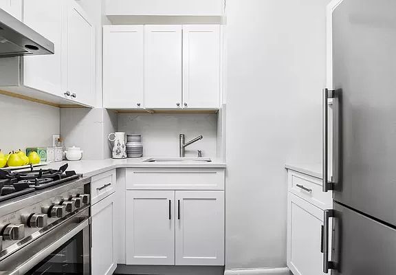 Private outdoor terrace, unlimited subletting after only one year of ownership, and incredibly low maintenance for a doorman building. What's not to love?! Unit 2L is a beautifully renovated studio apartment at The Griffin, one of the few doorman buildings located in prime Fort Greene. The owner recently undertook a full cosmetic renovation of the kitchen, bathroom and flooring, and the beautiful casement windows open onto a 12'x'14' terrace that is all yours (and which gets amazing afternoon light!). The kitchen has an upgraded stainless steel gas range/stove and refrigerator, Caesarstone counters and backsplash, and brand new custom cabinets for that super-clean white-on-white aesthetic. The bathroom was also refinished with new porcelain tiling and fixtures, and looks beautifully updated while retaining its pre-warm charm (we love the pedestal sink!). And the living space is roomy enough for 4 distinct living needs - sleeping, working, relaxing and dining. There's also a customized walk-in closet to round it all out. Simply put, this is a perfect studio apartment in an incredible location, and won't last in this fast-moving market! The Griffin is located just one block from Fort Greene park and endless restaurants and bars, and is just steps from the C and G trains and a 5 minute walk to the B/D/N/R/Q/2/3/4/5 and LIRR trains. The building has a part-time doorman, 24 hour laundry room, storage in the building, and a live in super. Pets are welcome, as are gifting, co-purchasing, and pied-e-terres. The building was converted to a coop in 1987, it was formerly a hotel that was built in 1931, and retains much of its original art deco design.