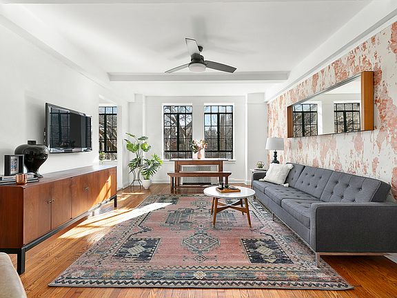 Oversized and rarely available corner one-bedroom at The Griffin, Fort Greene's premier doorman co-op. Filled with classic pre-war grandeur, Unit 4D offers a gracious entry foyer with three massive walk-in closets, french doors leading to an expansive open living space, 9 foot beamed ceilings, hardwood floors throughout, and large casement windows with southern and eastern treetop views overlooking Fort Greene's iconic brownstones. The kitchen offers ample cabinet space, butcher block counters, and stainless steel appliances including a built-in microwave and brand new dishwasher. The corner master bedroom offers beautiful southern and eastern exposures, two oversized closets, and easily accommodates a king bed with ample space for additional furniture. The Griffin is a landmarked Art Deco cooperative built in 1931, ideally situated on the corner of Lafayette Avenue and tree lined South Oxford Street, just one block from Fort Greene Park. It is also a few short blocks from Barclays Center, BAM, City Point, and the Atlantic Avenue subway hub which offers connections to the B, D, Q, 2, 3, 4, 5, N and R subway lines and the LIRR. Amenities include 24-hour doorman service, a live-in super, laundry room, bike storage & private storage. Pets, pied-a-terres, co-purchasing and gifting are all permitted, along with unlimited subletting after only 1 year of ownership.