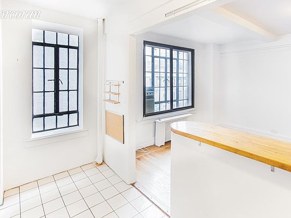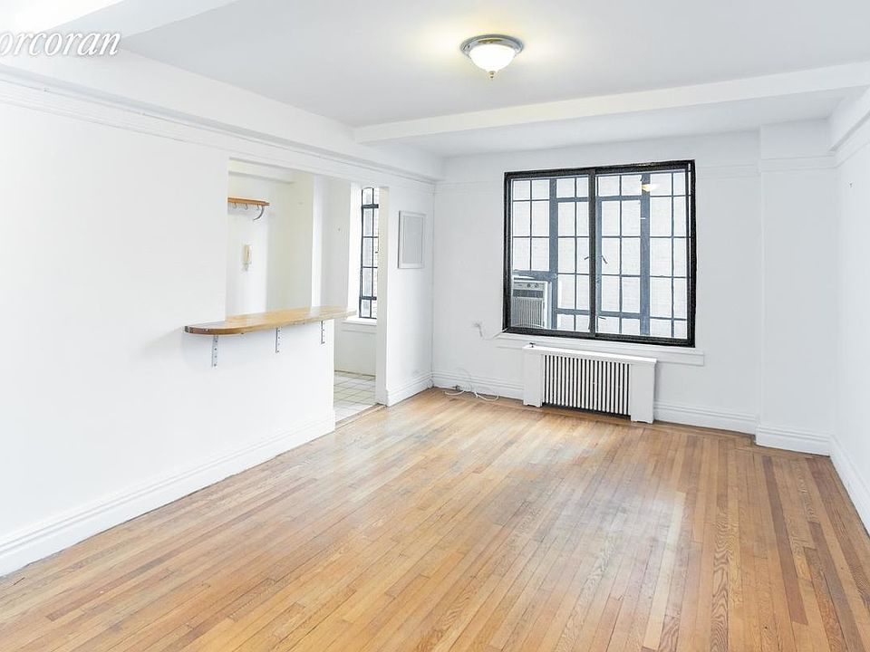 Bask in classic architecture and elegant comfort with this immense alcove studio. This wonder is located inside The Griffin, the most popular pre-war Art Deco building in Fort Greene. This landmark features a 24 hour doorman, live-in super, 24 hour laundry room, private storage, and two recently renovated elevators. Once inside, a charming entry foyer opens up to high beamed ceilings and shining hardwood floors. Three deep and abundant closets provide a wealth of storage space and room for bike storage. The home faces west and enjoys beaming sunsets and city views. Classic casement windows and charming light fixtures provide a warm, tasteful visual aesthetic. The impressive living area is sizable and can accommodate a king-sized bed and additional furniture. The separate eat-in kitchen showcases renovated appliances, including dishwasher, a window, and an additional bar. A plethora of cabinet space also wraps around the kitchen. The Griffin rests in one the most convenient spots in Fort Greene. This neighborhood offers a plethora of dining, parks, and transportation. Residents can enjoy close proximity to Fort Greene Park, Brooklyn Academy of Music, Barclay Center, and Atlantic Terminal.