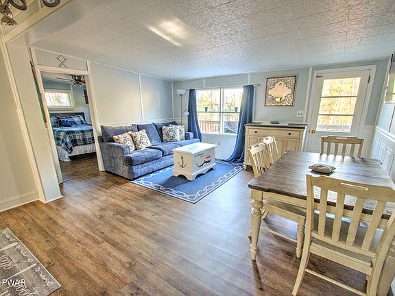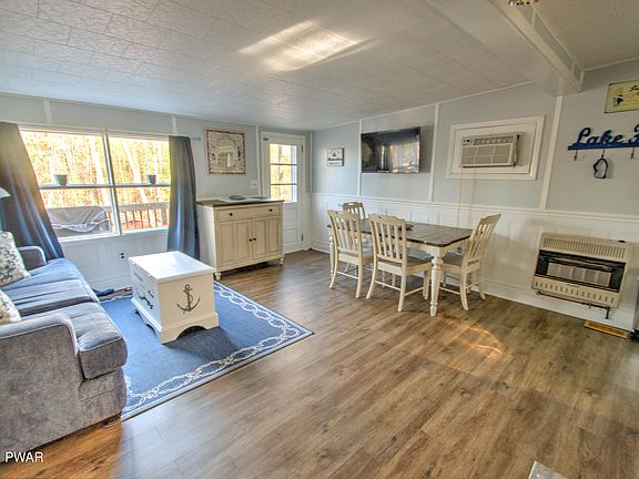 Lake Wallenpaupack Lakefront Cottage in Colony Cove. Walk to your waterfront & launch a kayak or keep your boat & jet ski at one of the 2 boat slips that are included (70' frontage cannot accommodate a boat dock)! This 4 bedroom, 2 full bath renovated home features an open floor plan, SS appliances, spacious lush yard, deck, shed, newer septic & partially finished lower level which includes 2 bedrooms, 1 full bath & kitchen. Boat slips are only 2 parcels away on the community dock!