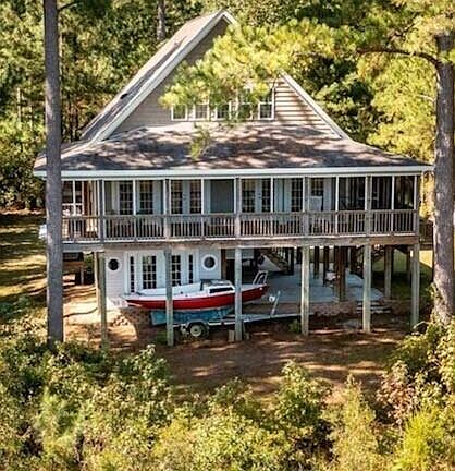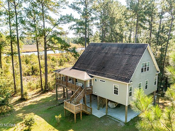 Step into your own boater's paradise in Davenport Landing—a waterfront gem with two spacious lots to explore. Lot #2 (2.97 acres) and Lot #3 (2.17 acres) are ready for your waterfront dreams, complete with county-approved septic permits and underground electric service already in place. But here's the best part: envision yourself on a breezy 12'x44' second-story screened porch, soaking in the breathtaking views of Trent Creek. And just a stone's throw away, a sturdy 40-foot dock awaits your boat, offering over 10 feet of water depth to navigate. You could share the beauty of this waterfront escape by splitting the lots. Or, you could keep it all to yourself—a private oasis for endless boating adventures. The choice is yours. Beautiful 3 bedroom/3 bath home in Davenport Landing! Features open floor plan, excellent energy efficiency with 2 x 6 construction, an abundance of light with tall ceilings and 4 double doors exiting to a screen porch which expands the width of the house. Immaculate home accented by bamboo floors, a gas log fireplace, stainless appliances, ceiling fans, walk-in shower, a loft and upstairs lounge area offers you the best of coastal living. There is a small historical cemetery on Lot #2.