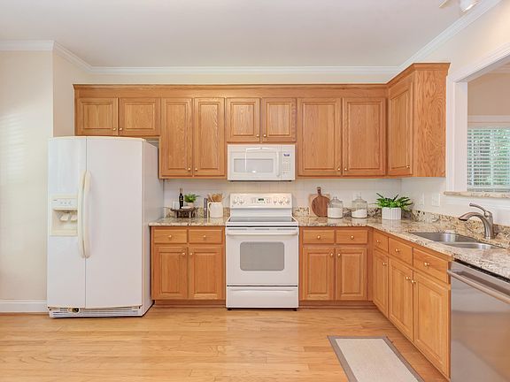 Amazing 1st floor primary townhome with full unfinished basement in the heart of Cary. What more could you want or need? This home has hardwood floors throughout the common areas including kitchen, living and dining rooms. The kitchen has lovely granite countertops and beautiful 42 inch high oak cabinetry. The primary bath was updated in 2018. The 1067 SF unfinished basement is plumbed for a bath and laundry. It is perfect for storage or finishing later for additional square footage. There is additional laundry closet on the 1st floor. On the second floor you will find 2 spacious bedrooms with walk in closets. The garage has a 220V outlet for an electric car. For the outdoor enthusiast, there are parks, trails and a community pool close by. This incredible townhome is just minutes from downtown Cary, SAS, shopping, and dining too. Don't miss this rare find.