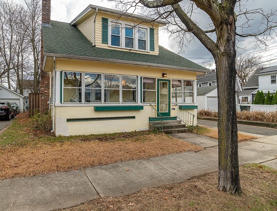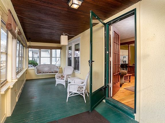 CHARM GALORE! Retaining many original features this home shines. Located near the East Longmeadow line. Inviting enclosed front porch greets you. Enter into the living room with hardwood floors and fireplace with pellet stove insert, natural woodwork, and open to the dining room with natural wood columns. Dining room with hardwood floors and custom built-in cabinets. Kitchen features ample cabinets, appliances and an eat-in area. Includes a new garbage disposal and newer refrigerator. Mudroom with good sized adjacent half bath. Three bedrooms all with hardwood floors and great closet space. Master bedroom has connecting room that would make an ideal home office or walk-in closet. Private backyard oasis with a large deck overlooking a pond will be ideal when spring arrives. Replacement windows, architectural roof, new boiler (2019) and upgraded attic insulation. Bosch washer & dryer (with steam feature) included. Garage has a new roof and overhead door. Welcome home!