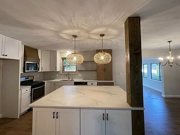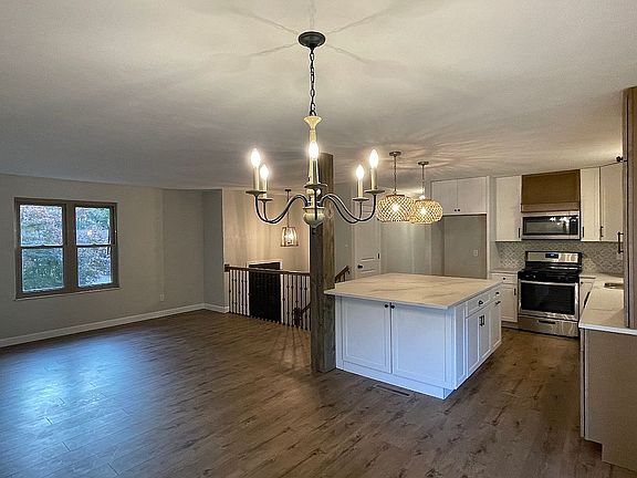 This 3 bedroom and 2 bath home features an interior filled with luxury vinyl plank flooring, quartz counters throughout, tile kitchen backsplash, fully tiled bathrooms, stainless appliances, ceiling height cabinetry with soft close drawers, unique lighting, two panels doors, two fireplaces, 4 1/4” baseboards, a beautiful staircase and much more!!!!!