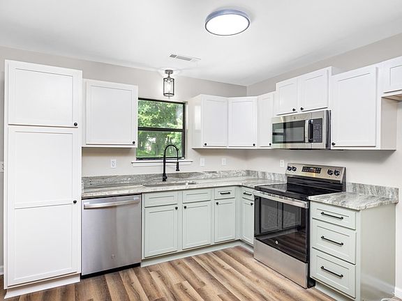 Completely updated 3 bed, 2 bath home on a quiet street, nestled on nearly half an acre! Enjoy peace of mind with a brand new roof, all new LVP waterproof flooring, lighting fixtures, interior/exterior doors, and tamper-resistant electrical outlets. The kitchen shines with all-new cabinets, countertops, and stainless steel appliances. A charming new brick skirt adds curb appeal, and the sunroom boasts all new windows to let the light pour in. Out back, a large concrete pad is perfect for a future garage or party space. Turnkey and ready to impress!