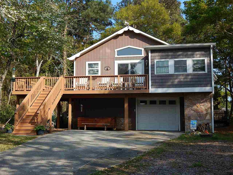 Looking for a home that offers lots of space, terrific value, tucked into a beautifully wooded lot on a cul de sac? Here it is. Offering 4 bedrooms, two are masters, 3 baths, an additional living space, a bonus area, a huge laundry room and a fabulous newly updated kitchen. Did I mention the lot is over 12000 sf? Much larger than the typical lot size in Colington Harbour. The upstairs of the home includes the main living area with tile floors and bead board wainscoting, and a smaller room off the living room that could serve as a sun room, office, study, game room, or whatever you wish it to be. The many windows allow for the natural light to pour in creating a warm and cozy space and front windows have UV film to protect the interior and keep the summer heat at bay.. The newly remodeled kitchen with new cabinetry and lovely granite counter tops is completed by tumbled marble stone back splash. A huge pantry just around the corner completes the space. Down the hall you will find three bedrooms (one master with private bath) and two additional bedrooms with shared bath. Attic access is also located here with new pull down stair. Down stairs has been completely remolded to include another family room and huge master suite, a large walk in closet with custom shelving and a 2nd master bath with 6 ft soaking tub and tile surround. The laundry room is truly a room with room for storage as well. Plenty of parking with the long concrete driveway. Even room for a boat and an added bonus of actual Shore Power! A few upgrades include: 2015, roof, new decking and paint, 2014 septic drain field, new kitchen with granite counter tops, garage enclosure with door and opener, 2013. two mini split units for heat and cool of downstairs, and 2012 new washer, dryer, water heater. You will definitely want to put this at the top of your list!