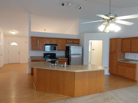 The house is one level house and is very nice house bright and open. The living room is huge and open to a great kitchen and its huge island. The dining room is close to the kitchen. The large master suite is on one side of the house with the other two bedrooms and bath on the opposite side. There is also an office.