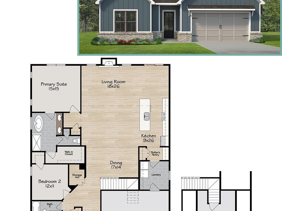 Welcome to the Balsam! This gorgeous plan really does have it all! Main Level Living AND a 2 car garage! A large vaulted family room, dining room, and breakfast nook flow together, centered around a gorgeous kitchen and island that help to create a dramatic and open great room. All three bedrooms sit comfortably on the main level. A large Primary Suite features a luxurious bathroom and walk-in closet, where the stress of your day will melt away in the freestanding soaking tub. The laundry room is located conveniently on the main level between the kitchen and garage. Upstairs, You will find a tremendous amount of Walk in storage - you really do have to see it!
