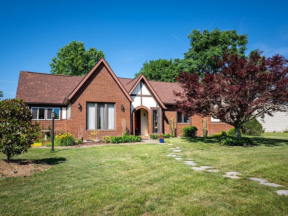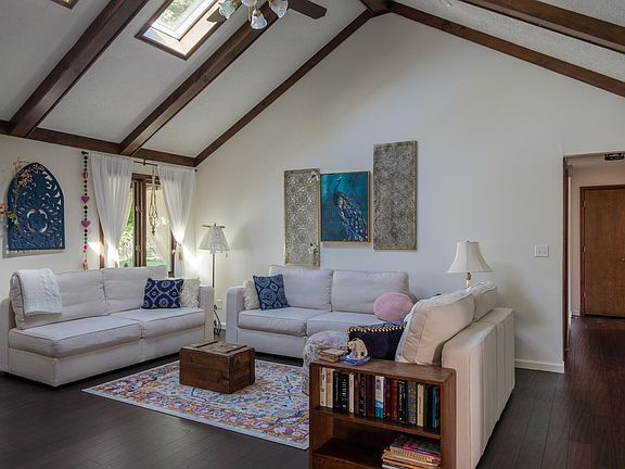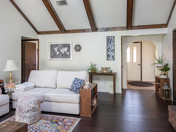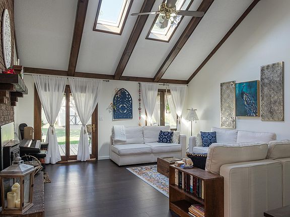 Welcome to this 3 bed/2 bath English tudor with sophisticated updates throughout. As you enter, you'll be greeted with warm natural lighting and a home office that could have a multiple use of space. A spacious living room with high, vaulted ceilings that showcase the stunning design of the home leads to a covered porch and patio, perfect for enjoying the peaceful, landscaped backyard.