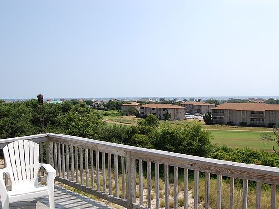 This wonderful resort home is situated on Seascape Golf Course and offers ocean and golf course views. Enjoy this property as a second or primary home conveniently located in Kitty Hawk. Perched on a high lot affords you amazing views and ocean breezes. Located on a cul-de-sac so that you have little traffic. The open great room with cathedral ceilings features wood floors, open kitchen with breakfast bar and dining room with ocean views. Half bath also on this level. There are three spacious bedrooms and a full bath on the mid level. Enjoy the large master suite, walk in closet and private bath on top floor. Freshly painted interior. You must see the interior of this home to appreciate. Owner rented to year round tenants for 3 years. Ready to sell.