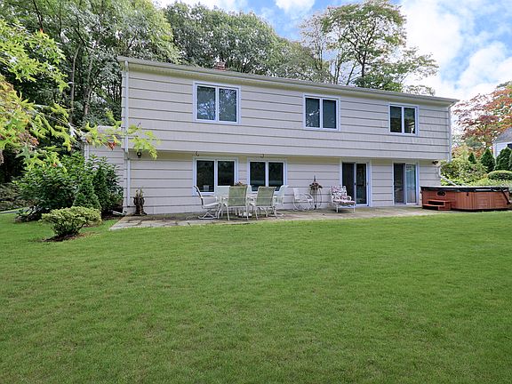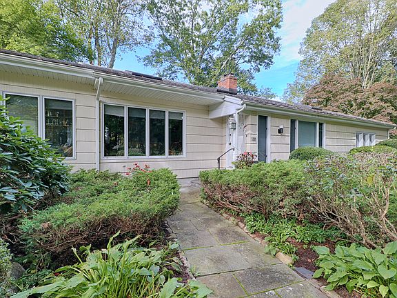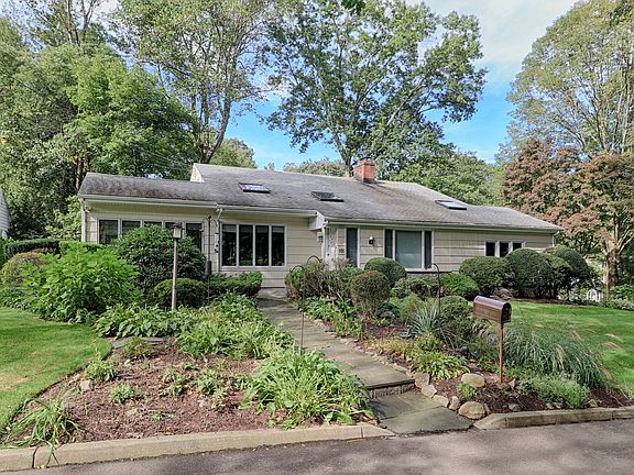 Spacious, light filled, mid century modern front-to-back split level home on horseshoe shaped street with 4-5 BR's & floor plan. Balcony with custom made brass railing overlooks sunken living room with hardwood floors, cathedral ceiling & focal point-a wrap around, 3 tier stone fireplace. Kitchen features tremendous storage space, Corian counters, induction cook top, double ovens and is open to dining and family rooms. Walls of recently replaced Pella and Anderson windows provide endless light and great views of perennial gardens, Brooklawn Country Club Golf course and spectacular birds. Spacious lower level family room with large fireplace, access to 2 car garage, bedroom with cedar closet, half bath with laundry and sliders to patio with hot tub. The second level includes 3 bedrooms and two full baths including a master suite with large shower and hand painted tiles. The hall bath features an Ultra Bath spa tub with frameless glass enclosure and Villeroy & Boch tile. Storage opportunities abound in the attic and basement which also contains a workshop area. Additional bedroom or office space can be accessed from a private staircase off the main hallway. Many special features and upgrades include steel beam construction, hot tub, anti-glare film on windows on main level, Silhouette window shades, AC, Weil Mclain gas furnace 2014 & hot water heater 2013. Great location near park, transportation, Stratfield Village & walking distance to Fairfield Warde and Stratfield schools.