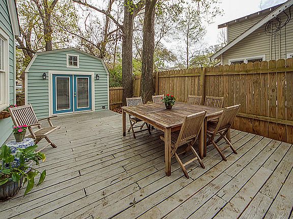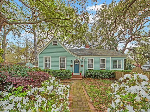 Adorable 1-story cottage within walking distance to all that Avondale has to offer! Situated on a quiet street on a double corner lot, this charming home built in 1945 has great curb appeal with mature landscaping, fresh exterior paint, brick walkway and arched covered front entrance. Entering the home, you will notice the beautiful hardwood floors, 9'+ ceilings, fresh interior paint and great flowing floor plan. The large living room features a wood burning fireplace and flows into a 7x13' playroom (could be used as a 3rd bedroom) on one side and into the formal dining room on the other. Off of the dining room, at the rear of the home, is a well-equipped kitchen boasting a reverse osmosis water system, white subway tile backsplash and huge pantry/mudroom for additional storage. The 2 spacious bedrooms both feature hardwood floors, tons of natural light and excellent closet space and share a full bathroom with tub/shower combo.The private, fenced-in backyard has a little something for everyone- it offers areas of sun & shade (which is perfect for gardening in the 4 raised, organic garden beds), a huge elevated deck, paver patio, updated landscaping and hardscaping, play yard, playhouse, functioning chicken coop, storage shed, AND a detached home office/school room off of the back deck (heated and cooled)! Additionally, there are NO HOA fees and this home is conveniently located within walking distance to shops, restaurants and entertainment and is less than 2 miles to Historic Downtown Charleston!