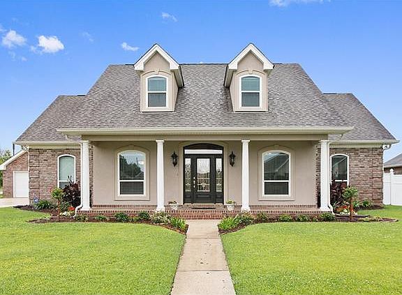 Beautiful Acadian home has triple crown moulding throughout downstairs. The kitchen has granite counter tops, 5 burner stove and dbl oven. Formal dining room has wood floors. Downstairs master bedroom. Master bath with separate tub & shower. Spacious vanity and huge walk in closet. 3 bedrooms upstairs & a large game room. New windows. Corner lot, wonderful yard, detached double garage.