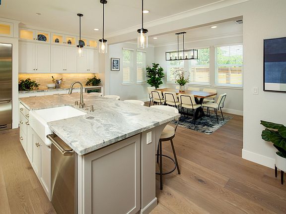 SPECTACULAR showcase MODEL home now released for sale at Oak Park by Davidon Homes! One of Oak Park’s most popular plans, this incredible Plan 3 model home features four bedrooms and three and one-half baths in approximately 3,157 innovatively designed square feet – with one of the home’s secondary/guest bedrooms with a private en suite bath conveniently located on the main level. The gourmet kitchen is professionally appointed with upgraded cabinetry, quartz countertops, designer splash, and Bertazzoni appliances. An inviting great room with wine cellar is beautifully finished with warm wide plank hardwood flooring, dramatic fireplace, and sliding doors to the covered outdoor living/entertaining areas. The upper level features a loft/recreation room, laundry, two generously sized secondary bedrooms, and an elegant primary suite with sitting area, romantic gas fireplace and stunning spa-like bath. All homes at Oak Park include a PV solar system and garage EV charging. This fabulous turn-key model home on a premium corner homesite has been extensively upgraded inside and out, and is ready for buyers seeking new home luxury without the wait! OVER $280K of designer options and builder upgrades included!