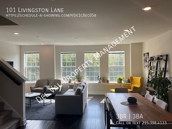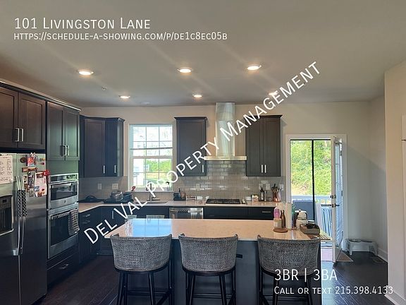 About this Property: - Newer Construction End Unit Townhome available for rent in Lochiel Farms! 101 Livingston Lane, Exton, PA 19341 - $3,415/month plus utilities. Sewer and trash included in rent. - Available November 1 - 3 Bedrooms - 2.5 Bathroom - 2,159 sq. ft. - Two-car garage - Open living concept with powder room on main living level with pinehurst floors and recessed lighting - Kitchen with large center island, quartz countertops, 42-inch cabinets and stainless-steel appliances with door leading to rear deck - West Chester School District - Finished recreation room on lower level, with sliding door leading to patio - Spacious master bedroom with walk-in closet with deluxe master bath, dual sink and walk-in shower - Two additional bedrooms each with roomy closets and a shared full hall bath - Conveniently located washer and dryer area also situated on bedroom level - Near shopping and restaurants, Exton Mall, Main Street, Whole Foods, Chester Valley Trail, Chester County Hospital, West Chester University, Valley Forge Park, Marsh Creek State Park, Montgomery County Community College, Rt. 100, 30 bypass, Route 202, Rt. 113 and PA Turnpike allows easy access to King of Prussia and Philadelphia - No smoking permitted - Pets considered with Owner approval, $40 - $60 monthly + refundable $300 deposit - Offering 1-year Lease or longer if needed - Showing by appointment Application Process - There is $50.00 non-refundable application fee and a one-time lease administration fee of $25.00. Applicants must put up three months' rent to move in (first months' rent and two (2) months' security deposit). Del Val will review your income(s), credit, rental and employment history and other information in order to verify that you qualify for the property. Unless otherwise noted in the ad, regretfully our policy is that pets are not permitted in this rental property. To apply online please go to Del Val Application Page. Our Resident Benefits Program is included with all Del Val Leases and includes many benefits. For qualified residents this allows you to forego your two (2) months of security deposits. If you elected to participate in our ZeroDeposit Program there are additional fees. For more details please go to ZeroDeposit Program. Additional benefits include Online Rent Payment, Concierge Utility Service, One-time Late Fee Forgiveness, One-time Non-sufficient Funds Forgiveness and many more. The cost for the Resident Benefit Program is $15.00 and is included in your monthly rent. Other Del Val Properties: To see our other properties for rent please go to Philadelphia Homes For Rent Property listed by: Del Val Realty & Property Management 49 E. Lancaster Avenue, Suite 300 Malvern, PA 19355 Philadelphia Property Management All information regardless of source is not guaranteed and should be independently verified. #PropertiesFor Rent #RealEstate #HomeForRent #ApartmentForRent #ProperiesForLease #HouseRentals #Tenants #PropertyManagement #RentPrices #HouseForRent #Rentals #PhillyApartments #PhillyLiving #ApartmentRent