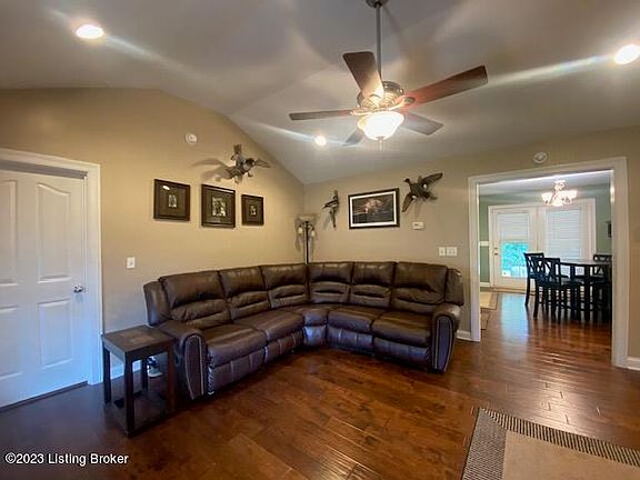 Location, Location, Location!!! Let's go take a look at this wonderful three bedroom two bath brick ranch style home with partially finished basement, two car lower-level garage & separate 30x32 detached garage on double lot consisting of 1.45 acres on a corner lot! This great home is waiting for a new family to call it their own! Great curb appeal with the covered front porch that greets you as you enter into the Living Room with vaulted ceiling & beautiful, engineered hardwood floors. Desirable split floor plan allows for the utmost in privacy. Eat in Kitchen provides nice cabinetry, convenient breakfast bar and comes equipped with a full complement of appliances including range/oven, refrigerator, dishwasher & microwave. Separate Main Level Laundry Room is an added bonus! One side of the home houses the Primary Bedroom suite with tiled Bathroom that features a large, tiled walk in shower. The other two bedrooms & full Bath are housed on the opposite side of the home. Unfinished basement provides plenty of storage space or could be easily finished to your liking & is rough plumbed for an additional bath. Venture outdoors to enjoy the beautiful covered rear patio area excellent for outdoor entertaining, cookouts, family gatherings or just to kick back & relax after a long day. Fenced back yard is an added bonus! Located near all the amenities of Historic Bardstown & easy access to I65 makes it a great commute location to Louisville, Elizabethtown & Ft. Knox. **PRICED BELOW APPRAISAL**