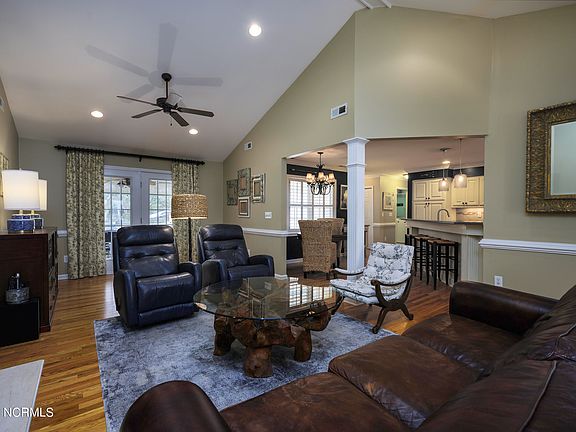 Perfectly situated on a half acre lot in the Reedy Creek subdivision is this beautiful home featuring a rocking chair front porch, a split bedroom open concept layout, a second floor fourth bedroom or bonus room, workbench space and a utility sink in the two car attached garage, and a large fenced-in backyard ready for entertaining! Welcome guests from the foyer to join for conversations around the fireplace in the living room under a tall vaulted ceiling. Prepare meals from the kitchen complete with stainless steel appliances including a wine refrigerator. Host dinner parties in the formal dining room or enjoy quick bites from your breakfast table. Let the gathering continue outdoors, whether from the screened-in porch, on the back deck or the back patio. The first floor master bedroom calls for relaxation after a long day with its cathedral ceiling, large walk-in closet and spa-like en suite bathroom with a dual sink vanity, walk-in shower and a jetted tub. Have two guest bedrooms on the first floor to provide company with a comfortable space of their own. Head upstairs to find the fourth bedroom with bathroom or turn this into a private home office. You will not want to miss out on this one! Located just minutes from Historic Downtown New Bern and a quick drive to MCAS Cherry Point or North Carolina's Crystal Coast beaches. Contact us today for your private tour!