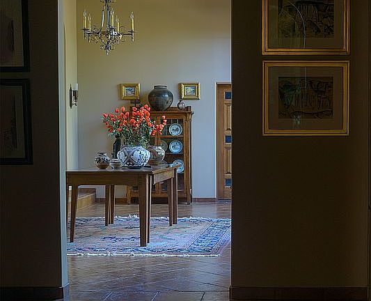Ceiling 10 to 15 foot high. 5 separate patios, formal study and library, museum lighting, interior garden patio with custom fountain, House feature in 2017 Invaluable Mag, Cowboys and Indians Mag, etc. Full acre irrigation system, greenhouse, wine room, star link, professional architect designed.