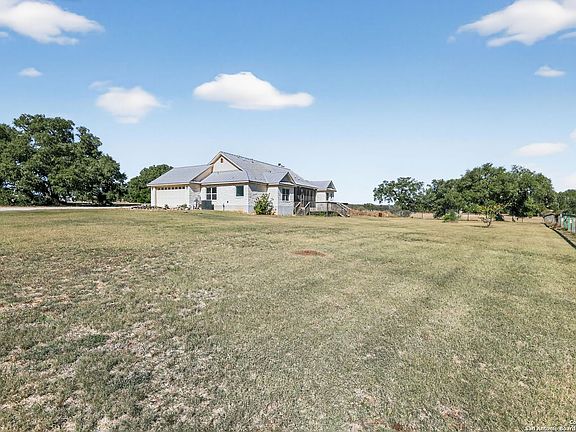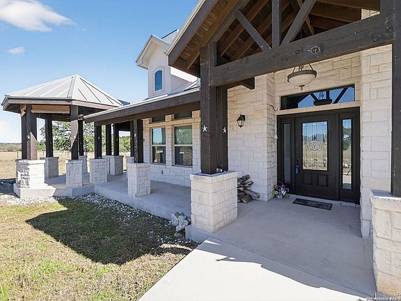 Experience the perfect blend of luxury and Texas charm in this stunning 4 sided masonry custom home. Featuring 4 spacious bedrooms, 2.5 bathrooms, and a dedicated office, this property was crafted with attention to every detail. Inside, you'll find rich stained concrete floors, custom wood cabinetry, and elegant granite countertops that bring warmth and sophistication to every room. Nestled in a cul-de-sac on 4.28 breathtaking fenced acres dotted with massive, mature oak trees, this property offers both beauty and privacy with incredible hill country views. An electric gate welcomes you home to your own peaceful retreat, located in the highly sought-after Bridlegate community. Whether you're entertaining family and friends or simply enjoying quiet Hill Country sunsets, this home is designed to impress.