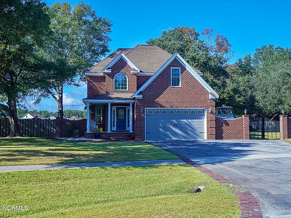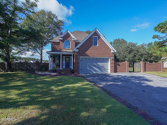 This one is something special! Stunning two-story brick home located just outside of Swansboro city limits is the perfect spot to hang your hat! This home has been tastefully updated and Immaculately maintained by its owner. Updates include new flooring, new carpet and runner on stairs, new deck, paint, full bathroom remodel and living room renovation. Upon entry, you'll find the living area, open to the kitchen with a dining and flex area just off the living room. Half bath downstairs for your convenience. Fall in love with the Coastal feel of this home that boasts new LVP flooring, plenty of cabinet space and bar seating at the kitchen. New range. Tile backsplash. Upstairs, the master bedroom is complete with beautiful hardwood floors, double trey ceiling, walk in closet, and an oversized custom tile shower with dual shower heads. The 3 additional bedrooms are also upstairs, along with a fully remodeled bathroom complete with new flooring, vanity, and tub/ shower. The large sprawling backyard is an entertainer's dream. Plenty of room to park your boat, toys etc. with no septic tank to worry about in the backyard ( which means plenty of room for pool in the future if you'd like!) workshop/shed perfect for studio, work space or storage. Entertain guests on the Brand new deck and large garden patio, perfect place for a fire on those Carolina nights. Neighborhood amenities include a day dock. Hammock Beach State Park just seconds down the road which has a boat ramp, kayak launch walking trails, or take the ferry over to Bear Island for the day of fun at the beach!This property is something you'd have to see in person to truly appreciate Not in a flood zone no flood insurance required. Minutes to downtown swansboro and the beaches of emerald isle. Come take a look at this beauty before it's gone!
