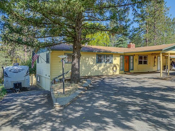 High demand locale! Living room with vaulted ceiling, wood floors, a fireplace and easy access to expansive deck with mountain views. Spacious bright kitchen with island/breakfast bar, granite counters, built in hutch, wood burning stove, corner windows, and lots of space for a dining table. Three bedrooms, two bathrooms and laundry room complete the main level. Lower level is a family room with mini frig, and beverage serving bar along with Master en-suite. Master includes, walk-in closet and bath with two sinks as well as access to the outdoors. Don't miss the hidden storage areas! Design of home allows for lower and upper levels to have separate living spaces. Grounds include fenced back yard and separate garden area with raised beds, a storage shed and green house. RV and boat parking in addition to multiple car spaces.