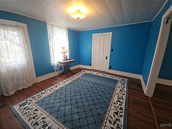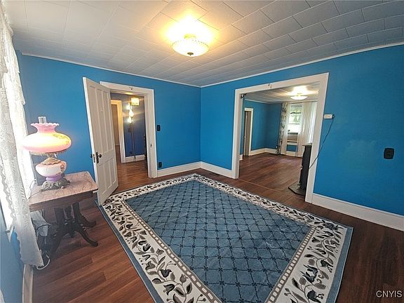 Experience the charm of history with this captivating 5-bedroom, 2-bath farmhouse, a true gem built in 1809 and located in the picturesque Village of Barneveld. Spanning 2,100 sq ft, this unique residence effortlessly combines modern amenities with the enchanting allure of yesteryear. Some bedrooms feature their own cozy fireplace, offering a delightful glimpse into the home's rich heritage. Beautiful hardwood floors flow throughout the space, enhanced by contemporary laminate updates in select areas. The electrical system has been meticulously modernized, ensuring safety and reliability for today’s lifestyle. Nestled on two generous parcels of land (Tax ID 194.011-1-35 & 194.000-1-17), this property boasts nearly 24 acres of rare, expansive acreage within the village—an incredible find! While the home is move-in ready, a little tender loving care and updating could revive its original historic grandeur. Don’t miss this extraordinary opportunity to own a piece of Barneveld’s history; this farmhouse isn't just a home—it's a canvas waiting for your vision, brimming with character, charm, and limitless potential!