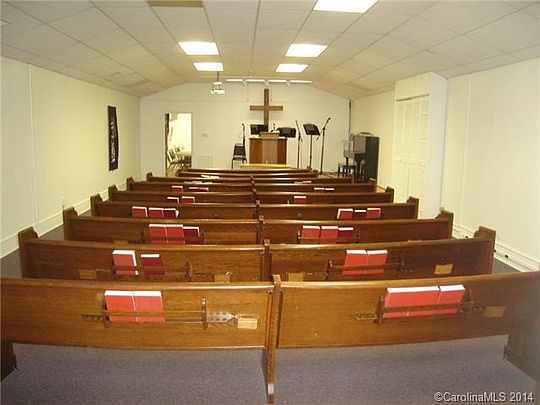2219 SQFT Building in Town of Clover Zoned B-2-This building is currently being used as a church. Building was renovated approximately 12 years. Building has 10 pews/seating approximately 70 people-3 bathrooms, office, Library, 2 classrooms, fellowship hall, & kitchen area. Security System-Fenced in Playground. Sq Ft