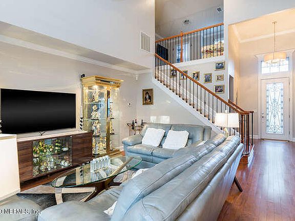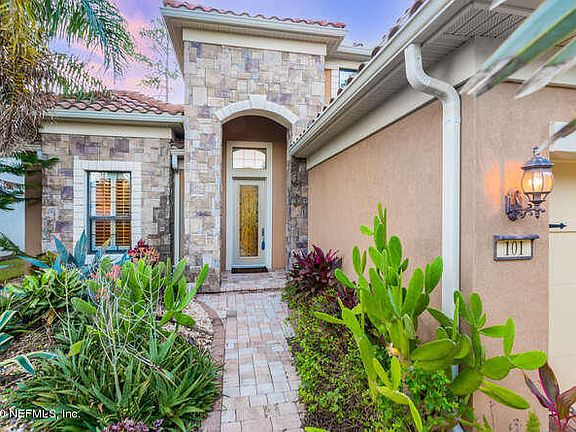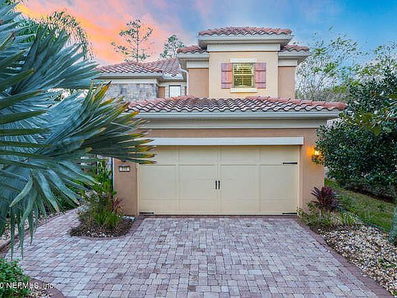 Beautiful Home located in a 55+ Gated community in Ponte Vedra. BLOCK construction and a SAFE ROOM in garage. This home was a formal model and has many upgraded features. You will LOVE the Spanish Tile roof, open wood and wrought iron staircase.... 20 foot vaulted ceilings, large windows in every room. The home borders a preserve and has an extended paver lanai with a summer kitchen. Professional Landscaping. Home comes with Storm Shutters in garage and Garage Tek floors & shelving. This home is an excellent option for the out-of-town guest to enjoy their own space upstairs...Master on 1st floor.
