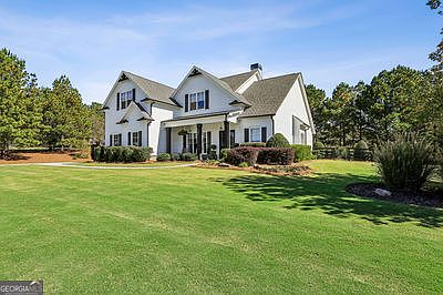 Set on two manicured acres in the prestigious Birmingham Estates community, this striking residence captures refined Southern living with modern flair. Featuring four bedrooms and three-and-a-half baths, the home blends effortless everyday comfort with luxury outdoor living. From the welcoming front porch to the sparkling sport pool and hot tub surrounded by marble decking, every space is designed for connection, relaxation, and entertaining in style. The open-concept floor plan showcases gleaming hardwood floors, abundant natural light, and thoughtful architectural details throughout. The primary suite on the main level provides a peaceful retreat with a spa-inspired bath and generous walk-in closet. The heart of the home centers around the warm fireside great room and gourmet kitchen- ideal for entertaining or everyday living-with an oversized island, custom cabinetry, and a casual dining area overlooking the backyard oasis. Upstairs, you'll find spacious secondary bedrooms and an expansive recreation room, ideal for movie nights, gaming, or guest accommodations. STORAGE IS ABUNDANT throughout, including a three-car garage, an accessible 12' x 14' temperature-controlled storage room above the garage, and well-organized closets. The covered patio with fireplace and TV makes entertaining effortless year-round, while the manicured lawn offers plenty of space for play and outdoor gatherings. Situated in one of Cherokee County's most desirable neighborhoods-known for its large estate lots, scenic setting, and charming mail pavilion-this home combines privacy, style, and convenience, just minutes from Milton, Alpharetta, and Crabapple.