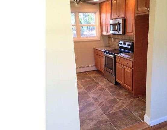 Newly renovated ranch house sitting on nearly 3/4's of an acre. This two bedroom house features finished hardwood floors. A brand new kitchen with granite counter tops, tile floor and backsplash and new appliances. Breakfast room leads to a new deck on the back of the home. One full bathroom that is completely renovated and that features tile throughout. New 200amp electric service panel. House has new windows and entrance doors along with new siding. The property also features a 2 1/2 car garage that has new doors along with added room off the back. Great house on beautiful piece of land.